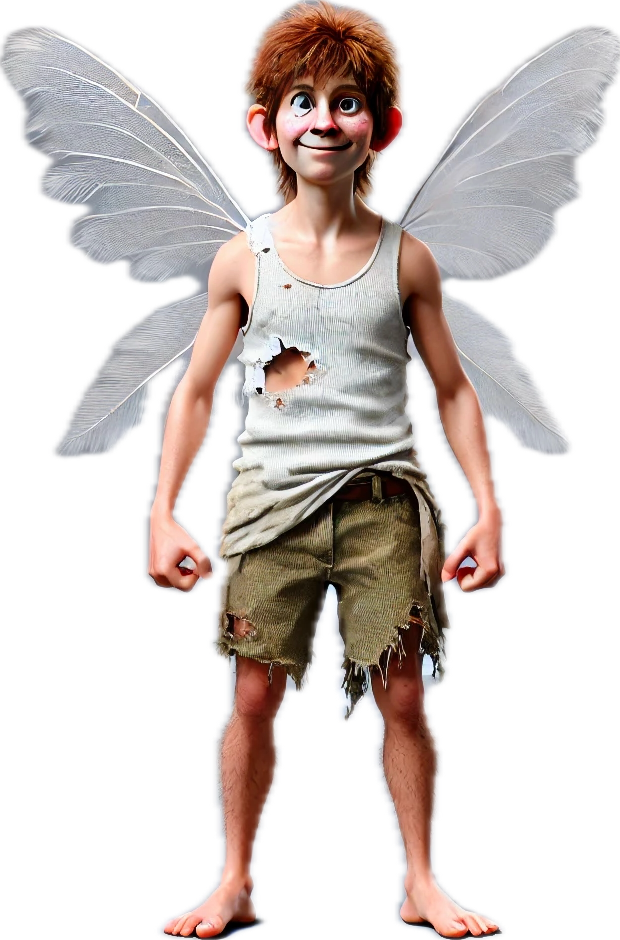Bo's wings are sleek and nimble, shimmering with a silver hue that catches the sunlight as he zips by. He’s known for his knack for getting into playful trouble, whether it’s sneaking up on his fellow fairies for a good-natured prank or racing down the pathways with a twinkle in his eye. Despite his scrappy appearance, Bo’s heart is pure and full of joy, always ready to defend his friends or lend a hand whenever needed.